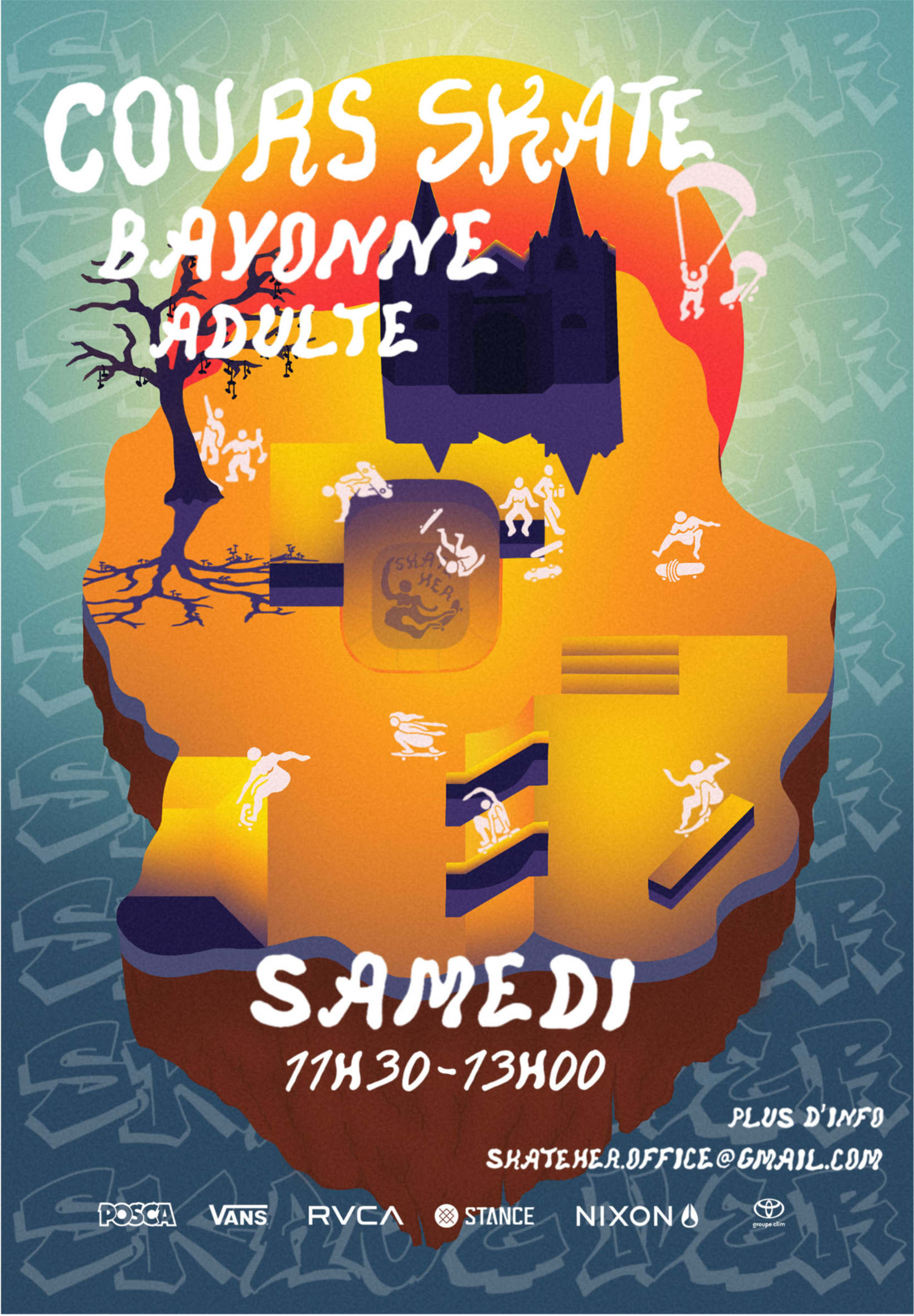Un créneau adultes au Skatepark de Bayonne, en association avec “The Bay”, tous les samedi de 11h à 12h30.